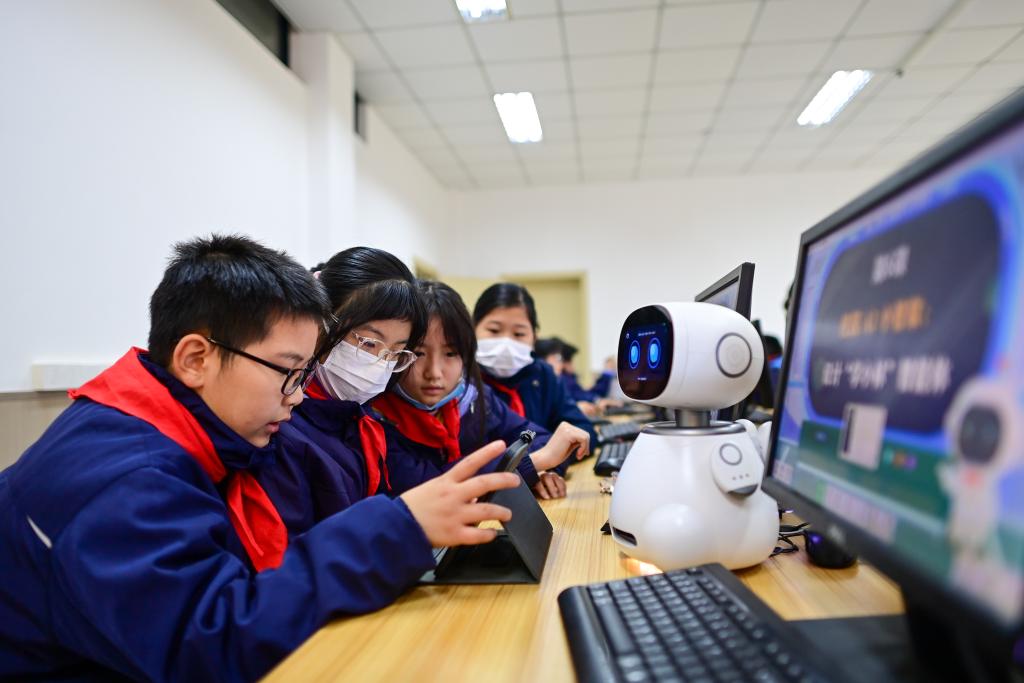 杭州市钱塘区学林小学的正在人工智能通识课上